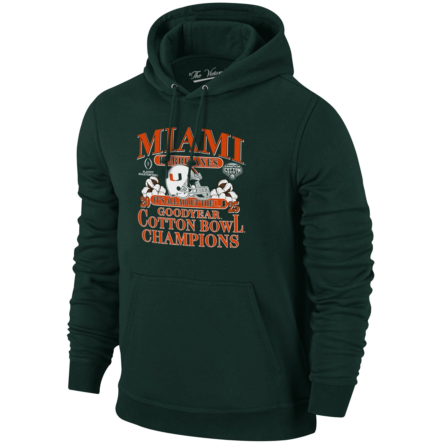 The Hurricanes have won the Goodyear Cotton Bowl Classic! Celebrate their victory with this screenprinted hoodie featuring the team helmet and champion marks.