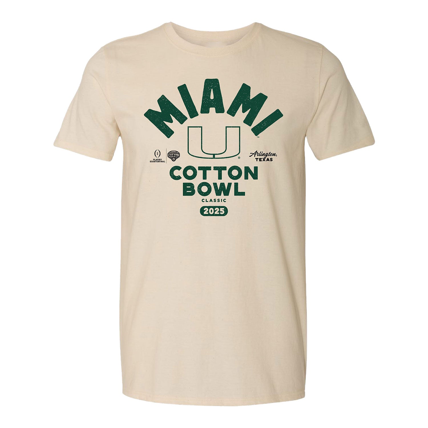Grab your Hurricanes Cotton Bowl Classic t-shirt here! Featuring a screenprinted graphic and a natural color, it is the perfect item cheer the team onto victory in.