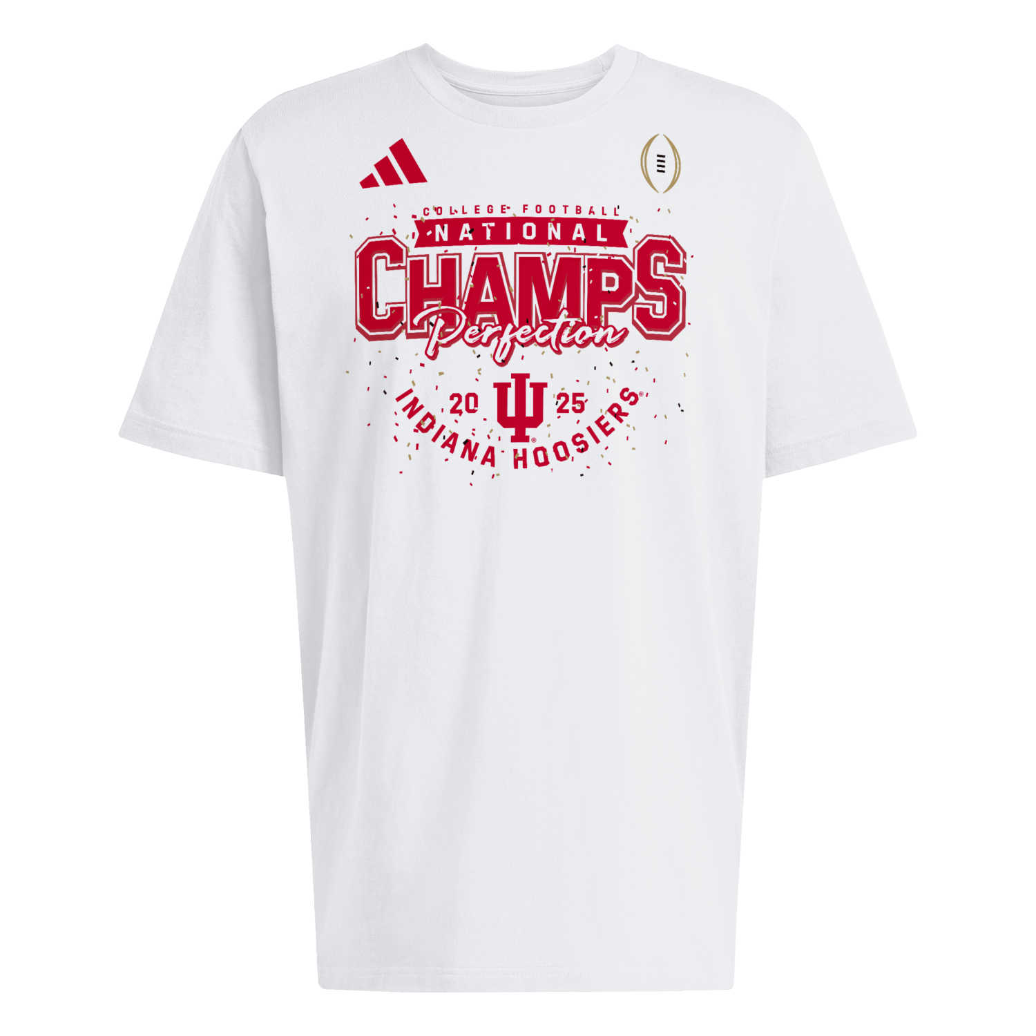 Celebrate a perfect season and a National Championship for the Indiana Hoosiers with this white Adidas t-shirt! It features a back graphic with Indiana's complete list of victories en route to the National Championship!