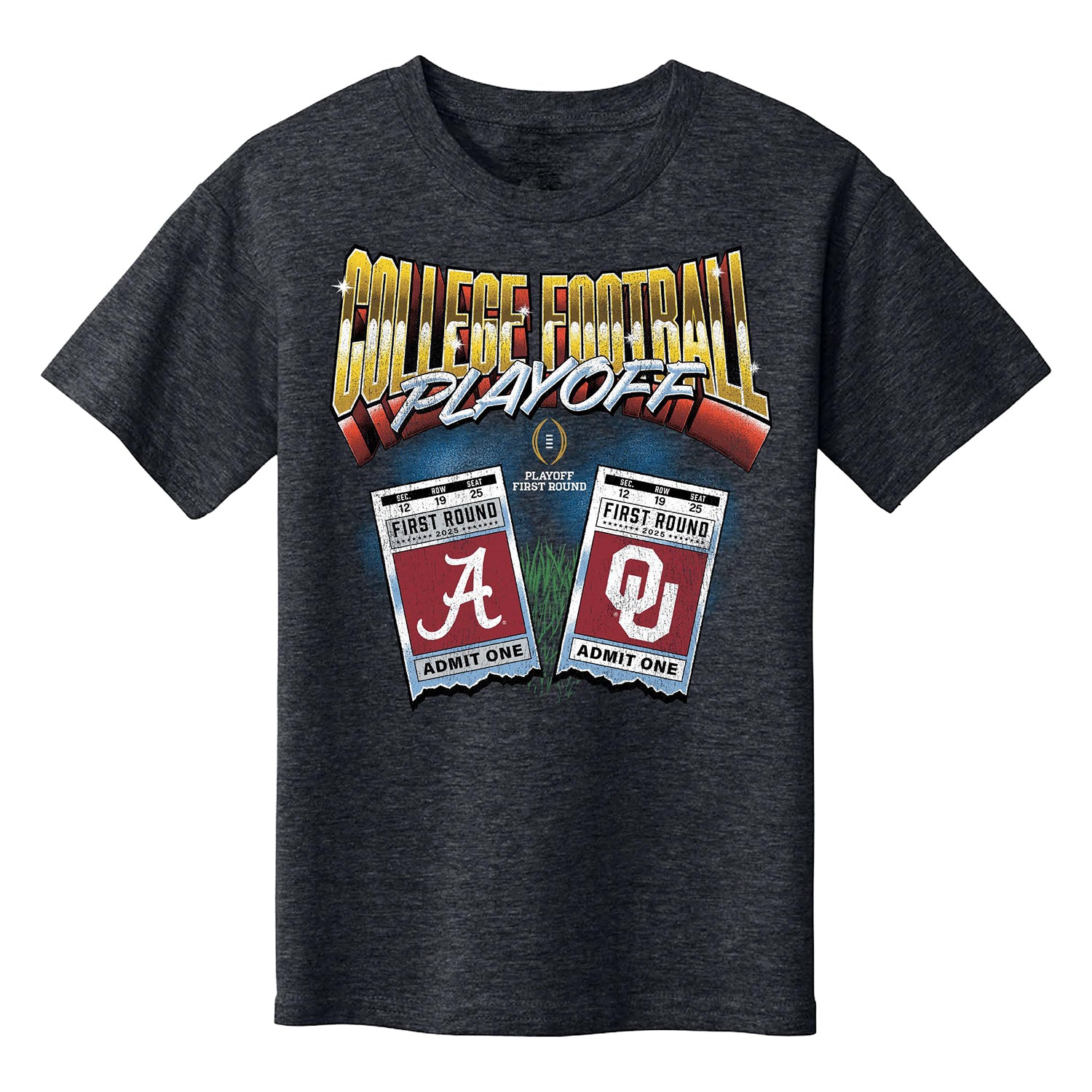 Gear up for the Round 1 showdown the Oklahoma Sooners and the Alabama Crimson Tide with this exclusive College Football Playoff 2025 First Round Ticket Youth T-Shirt, perfect for showing your postseason pride from kickoff to victory.